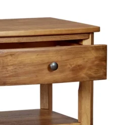 24″ Teak Wood Nightstand With 1 Drawer And 2 Shelves Brown – Benzara