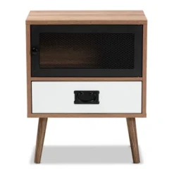 Hubbard Two-Tone Wood And Metal 1 Drawer Nightstand Natural Brown/Black/White – Baxton Studio