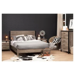 Munich 2 – Drawer Nightstand – Weathered Oak And Matte Black – South Shore