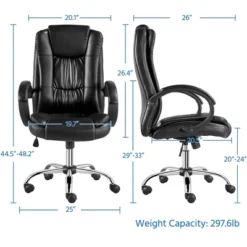 Yaheetech High Back PU Leather Office Chair With Padded Armrest, Black