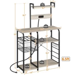 Yaheetech 4-tier 64″ H Kitchen Baker’s Rack With Power Outlet, Gray
