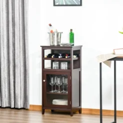 HOMCOM Wine Cabinet With 4 Bottle Wine Rack, Open Shelf, Acrylic Door Cabinet With Adjustable Shelf