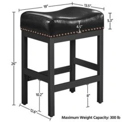 Yaheetech 26″H Bar Stools Faux Leather Counter Height Stools With Nailhead Trims Set Of 2, Black