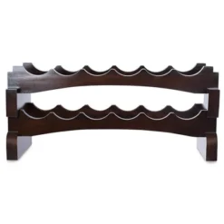 BIRDROCK HOME Stackable Wood Bottle Rack – 2 Wooden Wave Bars – Set Of 2-12 Bottle – Espresso