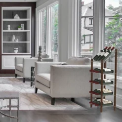 Home Source Bar Cabinet Bookshelf With Glass Doors In Chocolate Finish