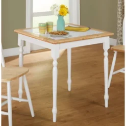 36″ Round Extension Dining Table With 4 Emily Ladderback Chairs White – International Concepts