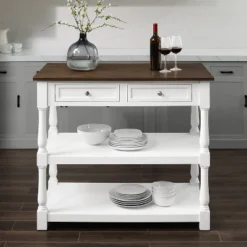 Avery Kitchen Island/Cart Distressed White/White Marble – Crosley