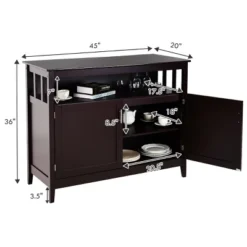 Costway Modern Kitchen Storage 36″ Height Cabinet Buffet Server Table Sideboard Dining Wood Brown