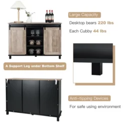 Costway Kitchen Buffet Storage Cabinet Sideboard W/ Sliding Barn Doors Adjustable Shelf