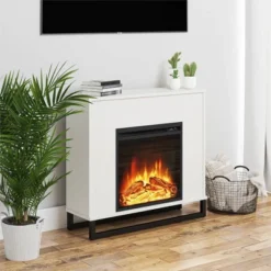 Glass Door Electric Fireplace Corner TV Stand For TVs Up To 50″ – Saracina Home