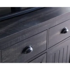 Home Source Charcoal Microwave Cart With Double Door Cabinet, 1 Drawer, And Top Shelf