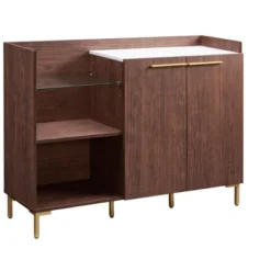 Home Source Bar Cabinet With Stem Glass Placement And Wooden Doors In Charcoal
