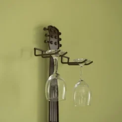 VintiquewiseBlack Metal Guitar Shaped Wine Rack Holder For Living Room, Dining, Or Entryway