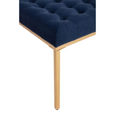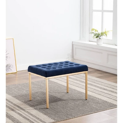 Enjoy adding this stylish, smart, and functional 24″ button tufted ottoman with metal base to your home. Offered in a range of sophisticated, cheerful and easy to maintain fabrics and colors, this rectangle button tufted ottoman with metal base will be an easy addition to your existing decorating style. The 24″ rectangle shape and comfortable button tufted seat allow this piece to stand on its own or work as a set of two to meet your design and seating needs. Use this for extra guests when entertaining, under a vanity when preparing for your day, or in your entryway or mudroom as a seating space to remove shoes.