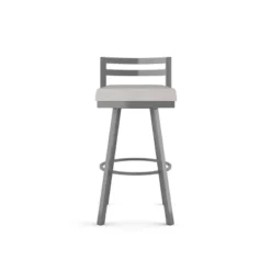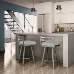 Add sleek and modern touch to your decor with the Derek swivel stool from Amisco. The sturdy metal barstool showcases geometric lines and a low back, creating a modern barstool perfect for your kitchen island. The swivel seat and upholstered cushion make for a comfortable seat while gathered around the kitchen counter or bar.
