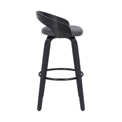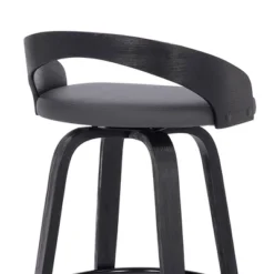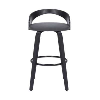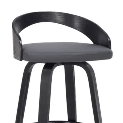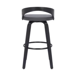 Add a touch of mid-century modern magic to your home with the Armen Living Sonia 26″ Swivel gray Faux Leather and Black Wood Counter Stool. Designed with comfort and style in mind, the Sonia features a 360-degree swivel that allows you to easily interact with your friends and family regardless of their place in the room! The curved wood low back is ideal for posture alignment and an unmatched support, its opening is perfect for breathable easy seating. The Sonia features a high-density foam cushion and beautiful faux leather upholstery that will allow you to sit or entertain for hours on end. The foundation of the product is supported by wood and chrome footrest for a chic and stylish aesthetic without comprising practicality and functionality of this item. The Sonia Swivel Faux Leather and Wood Counter & Bar Stool is available in a Walnut Finish with Brown, gray, or Cream faux leather upholstery or Black Wood with gray faux leather upholstery and a 26” or 30” seat height.