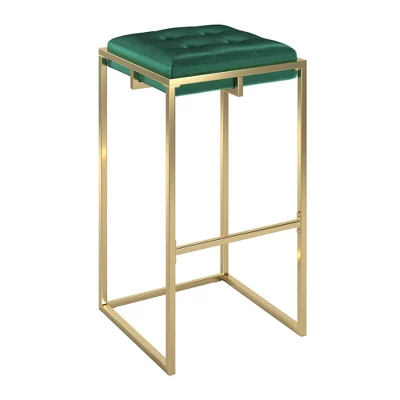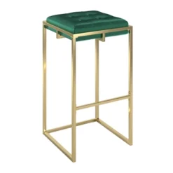Splash some color in your kitchen or bar area with the Ervyn Gold Finish Velvet Button Tufted Bar Height Chairs (Set of 2) from Inspire Q. Offering one of the most luxurious seats in the house, these stools fit right in with any eclectic or glam theme. Glittery gold-finished metal bases provide stability as they support plush, foam-filled seats. The seats are upholstered in rich velvet and button-tufted for both elegance and comfort. This set of two bar stools comes in your choice of height and color for the velvet upholstery to best suit your design style.
