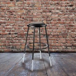 The fortified construction and soft comfort of the 6400-10 Series heavy-duty padded stools are ideal for hands-on educational settings like art rooms, science labs, home economics or shop classrooms. Height-adjustable legs extend from 25″ to 33″ in 1-inch increments. This reliable stool features a sturdy frame of 18-gauge steel tubing securely welded to a 14 diameter seat pan. Riveted through the steel pan are 1/2″ -thick black vinyl cushioning that will provide years of dependable use. Footrest ring is securely bonded to each leg with four spotwell contact points.