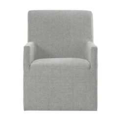 The Picket House Furnishings Marcy 5PC Standard Height Dining Set is sure to dazzle your dining room. This set includes one standard height dining table and four arm chairs. The ultracontemporary dining table is created with a tempered glass table top and a sleek, chrome table base. Circular designs accent the round drum table base for a bit of glam. The four arm chairs are fully upholstered from top to bottom in a linen like fabric, which will give you and your guests comfort while at the table. While it appears these chairs sit flush on the floor, they actually have casters underneath the chair base for mobility. Therefore, you can arrange them however you choose in your dining area. So, call your friends an family over for a amazing dinner party at your home!