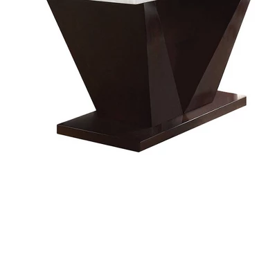 The Forbes dining collection features rectangular dining table with contemporary white marble top and contrasting V shape wooden pedestal in rich walnut finish. Stylish and contemporary this dining table will fit up to six people comfortably. The unique, two-tone design makes this table a centerpiece of your formal dining room. Made of high quality materials, it demonstrates delicate craftsmanship and has the perfect design to enhance your room.