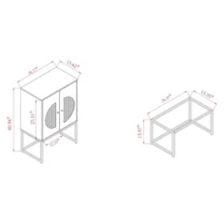 Combining retro design with modern geometry, the Ardon storage cabinet adds value to any space. Made in China, this striking piece combines natural rattan with a sturdy wood and metal frame for a tranquil, carefree display that exudes warmth. Two large shelves behind the doors offer ample space to organize and declutter busy areas of your home. Requiring assembly, the doors of the Ardon feature natural rattan accents for a charming, exotic touch. With a crisp and clean silhouette, the Ardon injects character to any space. Overall Dimensions: 40.90″ High x 26.80″ Wide x 15.70″ Deep; Legs: 14.40 “High; Storage Behind Door Dimensions: 25.60″ Wide x15.60″ Deep x 25.80″High; Door Dimensions: 25.50″ Long x12.50” Wide;