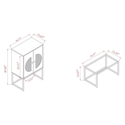 - Overall Dimensions: 40.90" High x 26.80" Wide x 15.70" Deep; Legs: 14.40 "High; Storage Behind Door Dimensions: 25.60" Wide x15.60" Deep x 25.80"High; Door Dimensions: 25.50" Long x12.50" Wide;