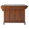 Bring elegance and function to your kitchen with the Avery Kitchen Island/Cart. Featuring a beautiful faux-marble countertop, this island is ideal for food prep or buffet-style serving. Two large drawers keep utensils and small kitchen items organized, while three cabinets with adjustable shelves are perfect for tucking away pots and pans. Both casters and feet are provided for your choice of a stationary island or a rolling cart, making the Avery Kitchen Island/Cart a wise addition to your kitchen space. Overall Product Dimensions: 42.13”W X 18”D X 36”H