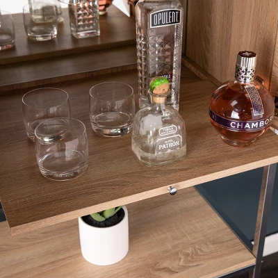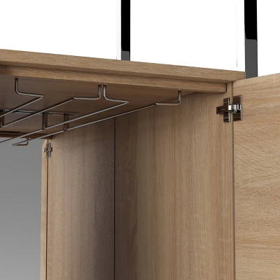 - Includes 1 cabinet, 3 open shelves, and 4 glassware racks