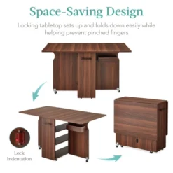 - SPACE-SAVING DESIGN: A compact structure makes it ideal for use in smaller spaces; made with a tabletop that locks into place whether open or closed to help prevent unwanted movement; OVERALL DIMENSIONS: 52″(L) x 31.5″(W) x 30.5″(H); MAIN TABLE WEIGHT CAPACITY: 100 lbs.