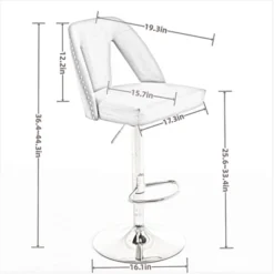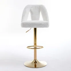 These elegant stools feature ribbed velvet seats and a comfortable cutout back design. The chromed Golden base and velvet upholstery create a delicate and luxurious look in your kitchen.The hydraulic lift allows you to adjust your seating level, while the 360-degree swivel function enables you to turn and join the conversation wherever it may be.The custom-made T-shaped footrest is thicker and stronger, offering additional comfort and stability. The set of 2 stools also come with built-in lumbar support, providing a comfortable backrest. Padded seats are included for style, comfort, and shoulder support.The high-density foam cushioning on the seat and back ensures a comfortable seating experience. These stools are the perfect choice for various settings such as home, office, dorm, conference, restaurant, kitchen, dining area, patio, bistro, or even for parties.Additionally, These elegant stools are available in two material options: velvet and faux white rabbit hair.adding a touch of sophistication and uniqueness to your space.