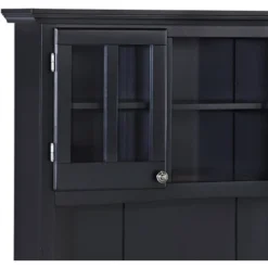 Store it all, display it all, and have it all with the Homestyles Buffet of Buffets Server with Hutch. Whether used in the kitchen, dining room, or anywhere else, it brings organization to your life and style to your home. The variety of storage options from cabinet shelves to drawers to wine racks gives you the flexibility to figure out what’s just right for you. Glass cabinet doors on the top put your most special items on display, while the solid hardwood top creates a classic look. Pack more storage into a smaller footprint with this black server that easily coordinates with a variety of environments.