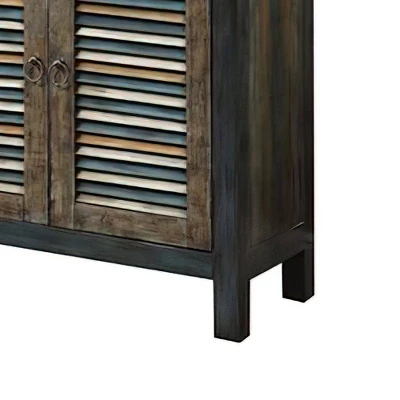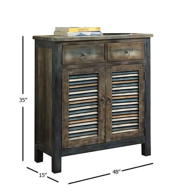 This Oak Teal Console Table from Acme Furniture is sure to be the perfect addition to your living room, dining room or entryway. Featuring a wooden construction in a distressed finish, this farmhouse-inspired console table has all the rustic style you’re after. Two top drawers offer storage space you’ll appreciate, and the dual cabinet doors are styled to look like shutters for extra visual interest. Use this table as an entertainment center, bar area or simply as a decorative element for a distinctive look you’re sure to love.