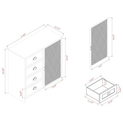 - Overall Dimensions: 32.30″ High x 31.50″ Wide x 13.80″ Deep; Drawer Dimensions: 13.85″ Wide x 11.77″Deep x5.11″ High; Storage Behind Door Dimensions: 15.80″ Wide x13.80″ Deep x28.50″ High; Door Dimensions: 14.60″Long x 28.30″ Wide;
