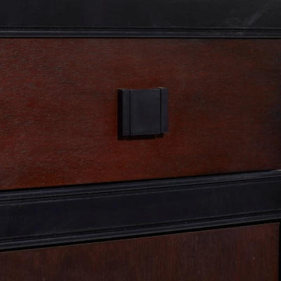 - •This storage cabinet has a dark brown finish with black frames and hardware
