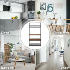 - Ample Storage Space: 2 wooden layers with heat resistance are perfect for electric appliance. Grid layer on the bottom features with good ventilation and moisture resistance, ideal for items like vegetable. A top narrow shelf is a good place for ornaments.