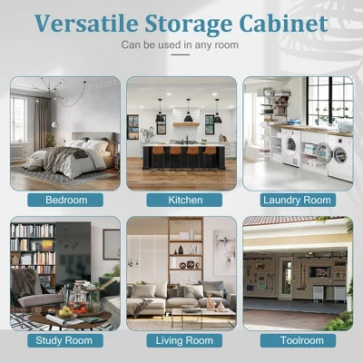 - Multifunctional Storage Cabinet: With its simple white finish and modern elegant appearance, this storage cabinet can blend well into the furnishing styles and add extra storage space to any room. It can be used as a kitchen cupboard, a bedroom wardrobe, a garage utility cabinet or a laundry storage organizer.