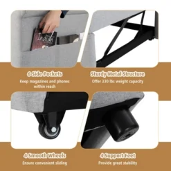 - Adjustable Backrest & Side Pockets: Considering that individual requirements differ a lot in different occasions, the backrest has 6 levels of angle adjustment (95°/115°/ 130°/ 145°/ 165°/ 180°). In addition, there are 3 storage pockets on both sides, allowing you to keep magazines, remote controls, mobile phones within your reach.