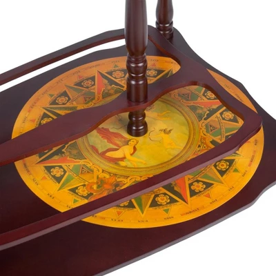 Serve guests with Old World style from your own globe bar cabinet that opens to keep favorite beverages and stemware at your fingertips! Embellished inside and out with replica vintage maps of the earth and skies, this 13″ diameter bar set has ample room for your treasured bottles and glasses in its double level bar globe storage area. You’ll be able to offer cocktails anywhere by easily relocating this sturdy hardwood portable caddy using its rolling metal casters and to smartly serve canapes from the adjacent globe bar table. This liquor cabinet is the perfect gift for any new home bar! Simple assembly required. 27.12;”Wx18″Dx34.12;” H. 17 lbs.
