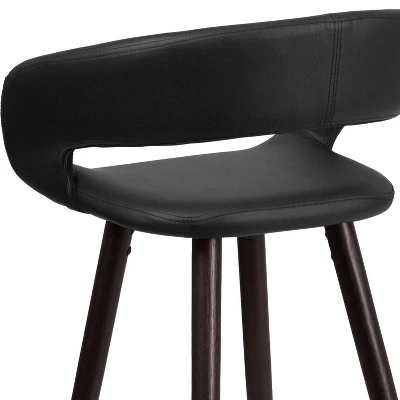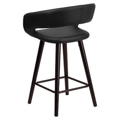 This exquisitely designed black counter stool will add an elegant touch to your home. This upholstered stool will appeal in your kitchen, dining room, bar or game room. The rounded back features a decorative zipper trim design. The durable hardwood frame is stabilized with the included foot ring. The floor glides help protect your floors and ensure smooth gliding, and the lightweight design is easy to move and transport. For attractive and versatile seating, this four-legged stool will fit perfectly in all environments.