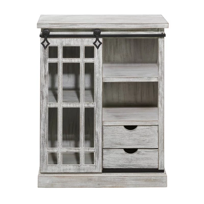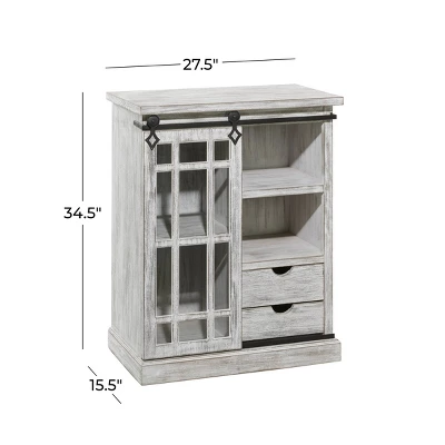 This sweet & charming wooden cabinet is ideal for country cottage, rustic, and farmhouse themed home interiors. A practical yet stylish upgrade that instantly elevate the look of your room. Maintain a clutter free zone and stay organize with this chic cabinet. This farmhouse accent cabinet features 2 drawers that can hold up to 25 lbs. Suitable for indoor use only. Maximum weight limit is 100 lbs., each drawer can hold up to 25 lbs., each shelf can hold up to 30 lbs. A rectangular cabinet featuring 4 separate shelves with weight capacity of 30 lbs. Farmhouse-themed style.