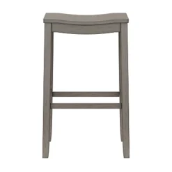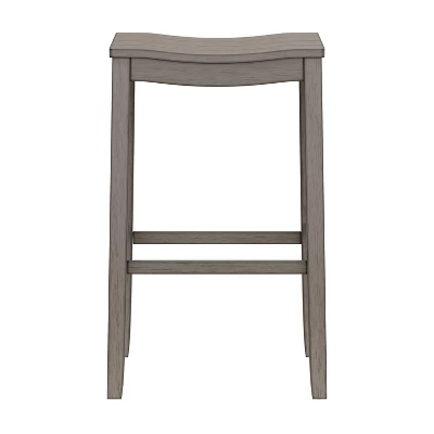 Whether you prefer a sunny, sandy beach or a windy, rocky shore, you’ll love the coastal charm of this bar height stool. Versatile and on-trend, this backless bar stool features a wide, perfectly curved shiplap saddle seat for maximum comfort. The aged gray finish is reminiscent of a soothing summer rain in a quaint coastal town and is an easy addition to any decor. Durable wood flared legs add extra support and are complemented by perfectly a placed footrest adding an extra layer of comfort while eating, entertaining or working. Assembly is required.