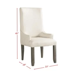 The Picket House Furnishings Flynn Dining Set is dressed in a distressed dark walnut finish, making it the perfect addition to any dining room. This handsome trestle style table features a removable leaf for added space and two chair options to suit your style. The Parsons Chair is upholstered in a cream polyester fabric with wooden legs matching the finish of the table. The back of the wooden side chairs are designed to match the trestles of the table with the same angled panels. Turnbuckle metal accents complete this look of the rustic chic collection.