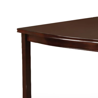 Homes: Inside + Out Glaivewood Dining Table in Espresso brings an inspired, simple elegance to your formal or semi-formal dining space. The rounded edges add a sophisticated look and brings a sense of unique, graceful style to your dining room. Friends and family will appreciate its inviting look and grand elegance Homes: Inside + Out Glaivewood Dining Table in Espresso easily seats 8 friends and family members and also features a useful 18″ expandable leaf!