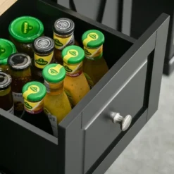 - All-in-One Organization: Elevate your kitchen game with the built-in spice rack, towel rack and metal drawer handles of this versatile kitchen cart. It keeps your kitchen essentials within arm’s reach, streamlining your cooking process and fueling your culinary creativity.