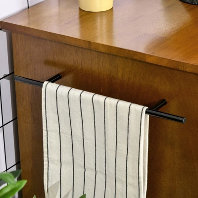 Are you looking to maximize your kitchen? Need a kitchen cart with storage for your apartment or dorm that won’t take up tons of space? This rolling kitchen island features a compact and simple design that can fit into various decoration styles. The rolling utility cart has two towel racks, a pull-out drawer, and a double-door cabinet, while the rubber wood countertop turns your storage cart into an instant prepstation. Upgrade your kitchen today with HOMCOM.