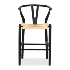 True mid-century inspiration goes a long way with the Weave Counter Stool. Boasting a familiar silhouette with a curved back and clean lines, the weave delivering that punch of drama that your living area or library has been seeking. The stool features a solid wood frame with a medium finish and a woven rope seat that offers textural contrast. This counter stool is perfect for a kitchen countertop, and creates a classic, natural aesthetic for the home.