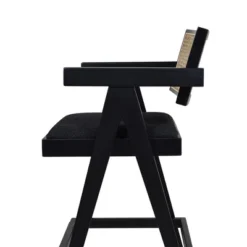 - Matching black boucle upholstery with a tweed, faux-sherpa texture