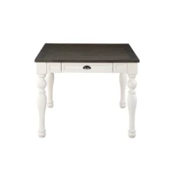 Classic farmhouse styling is updated for today’s dining with the Joanna Two Tone Dining Table. Sturdily constructed from hardwood solids and acacia veneers with a two tone charcoal/ivory finish. Features include turned legs, picture frame apron and one working drawer with cup pull hardware to create a look that feels both new and vintage. Includes one 16″ leaf to extend the table to a spacious 80″ when extra seating space is needed. Your purchase includes one dining table with leaf.
