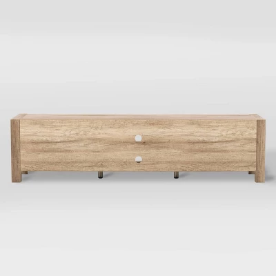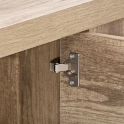 An sturdy and bold design paired with clean lines to complement any room’s décor. With shelving space for all your A/V equipment and accessories, the beautiful duotone cabinet doors with high quality powder coated aluminum handles enclose large storage space on both ends to keep it tidy and organized. Sturdy construction with adjustable center support legs, this bench the perfect design to hold TVs up to 90″. A great focal point in any living room or entertainment space.