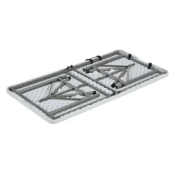 Always be prepared for a gathering with the JOMEED 4-Foot Portable Folding Multipurpose Utility Picnic Event Table. Perfect for dining, card games, or parties, this sturdy multipurpose table is ideal for both home and office, and is durably crafted for either indoor or outdoor use.Whether you’re sitting down for family dinner while camping in the woods or setting up a crafts table for the kiddos, this table can handle it all. Constructed from a highly durable plastic top surface, this table is perfect for messy meals and other activities. The top surface wipes down easily and won’t get damaged by spills, ensuring it’s used for a long time.The table folds in half and has a built-in handle for easy transportation and compact storage. The powder-coated steel legs keep the table sturdy and won’t rust over time ensuring smooth folding every time. The legs are adjustable up to 28.94 inches, so you’ll always have the height you need. Safety features include protective plastic clips and non-slip foot padsDepend on the durable construction and unbeatable convenience of the JOMEED 4-Foot Portable Folding Multipurpose Utility Picnic Event Table.